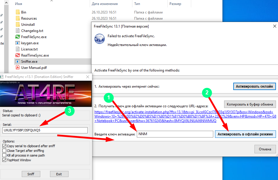 Активация выполняется оффлайн, через sniffer. И только что проверил, активация выполняется. Не совсем верно описал активацию: Запускаете через sniffer, вводите любой код для оффлайн активации. В окошке sniffera появится актуальный код.