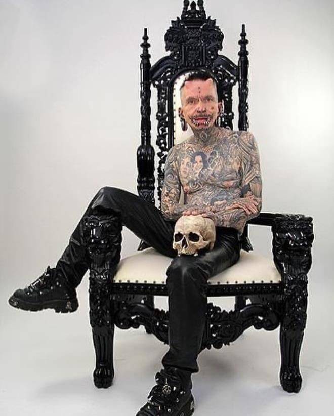 Очень богатый фрик. Дядьку зовут Рольф Бухгольц. На других фотографиях, у него крашенные белки глаз и катушки в ушах.