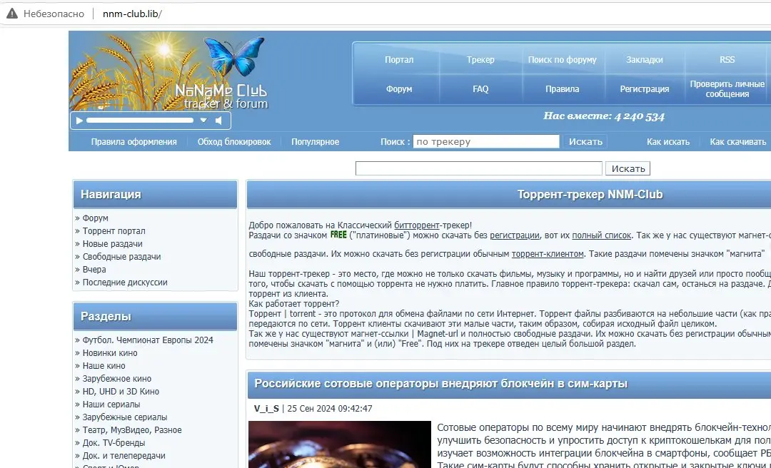 Доступ к https://nnm-club.lib/ отзывается, но не защищен SSL - недействительный сертификат.