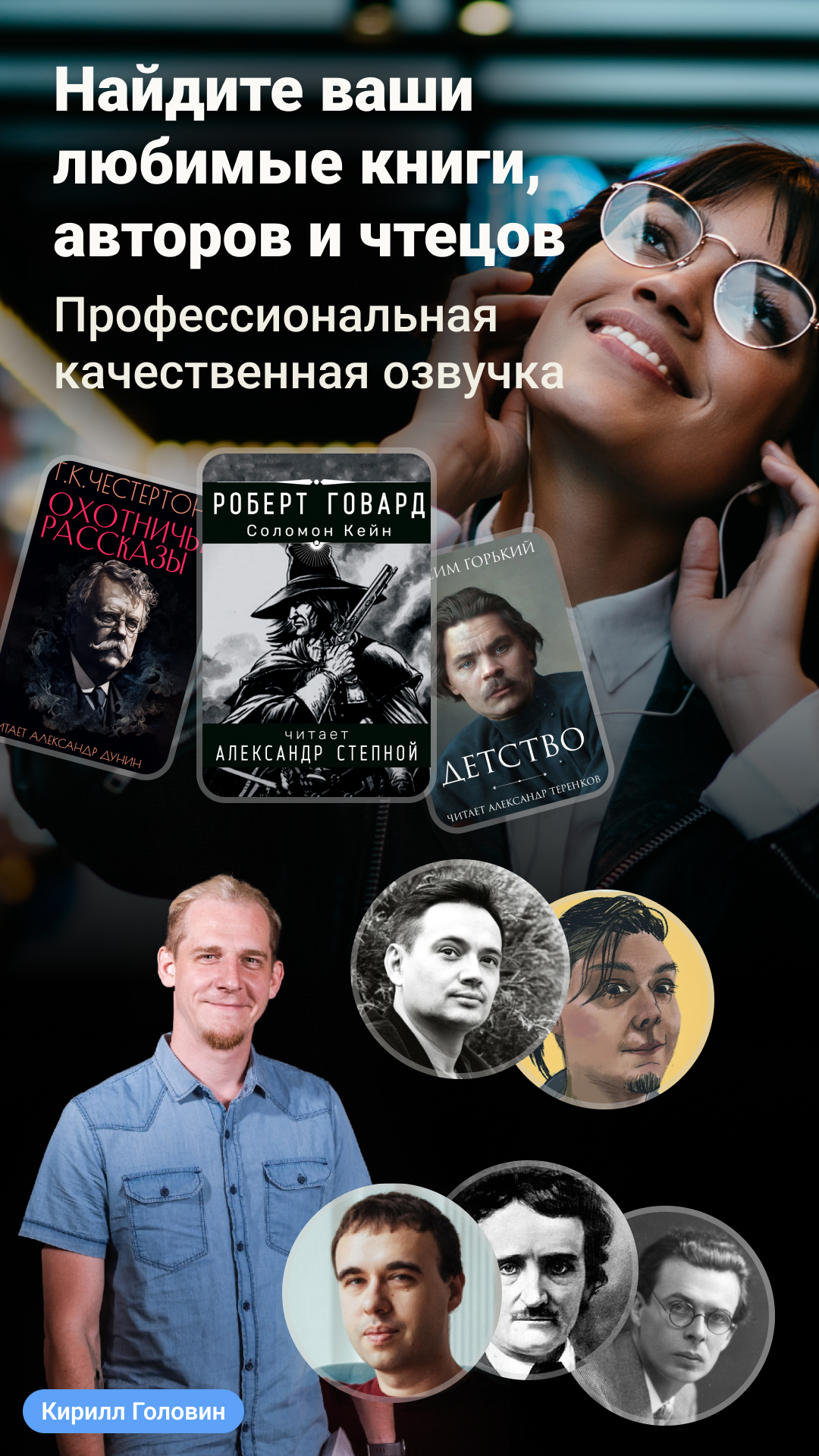 📚 Отличная библиотека книг на любой вкус от известных авторов, как Лев Толстой, Роман Суржиков, Виталий Зыков, Джо Аберкромби, Говард Филлипс Лавкрафт, Джек Ритчи, Андрей Лоскутов и множество других русскоязычных и зарубежных классиков. Также Вы познакомитесь с множеством новых восходящих авторов и декламаторов в BOOKlis.