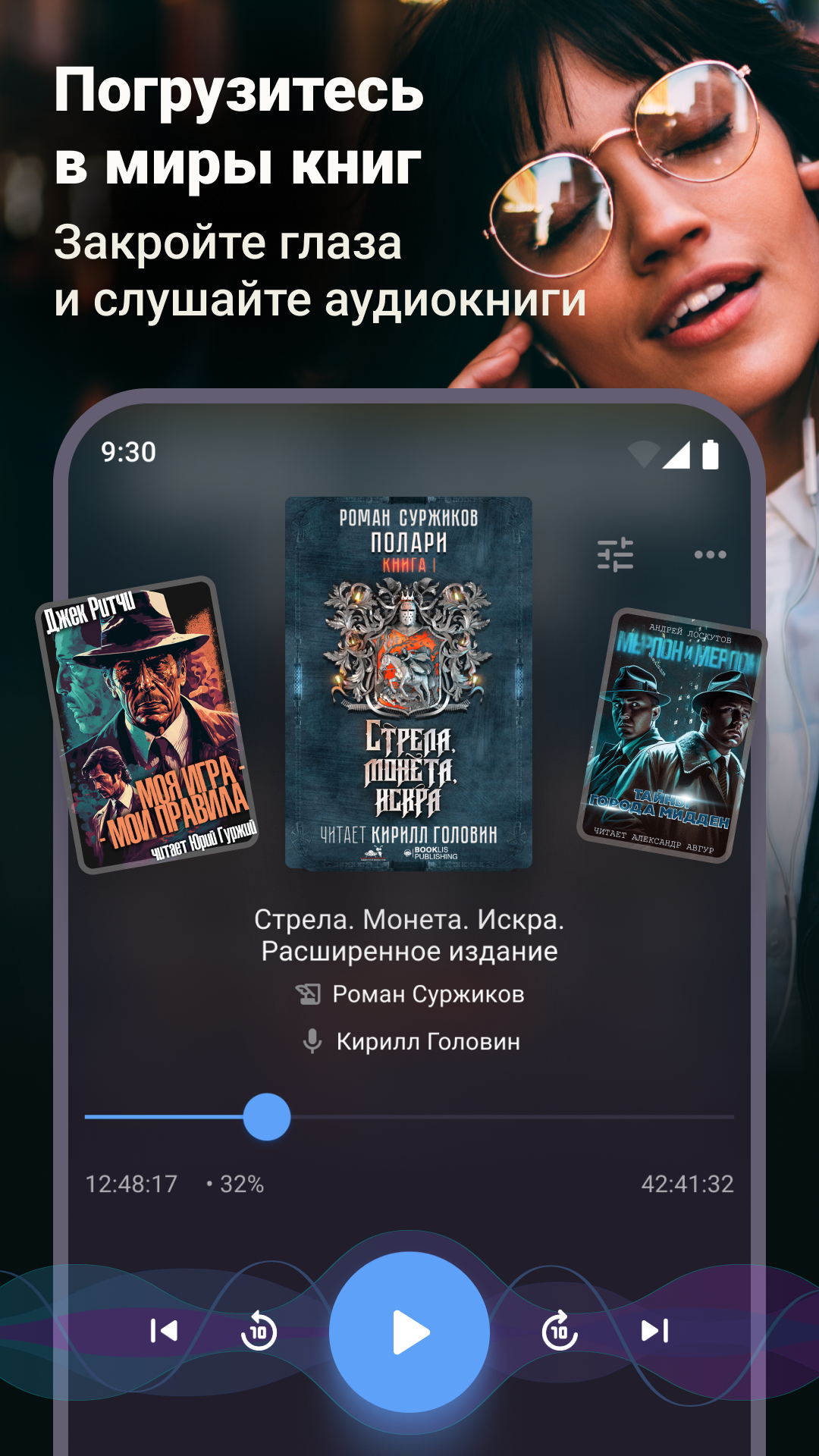 • Нашли интересный момент в книге? Создайте закладку — аудозакладку, которой вы сможете поделиться со своими друзьями;