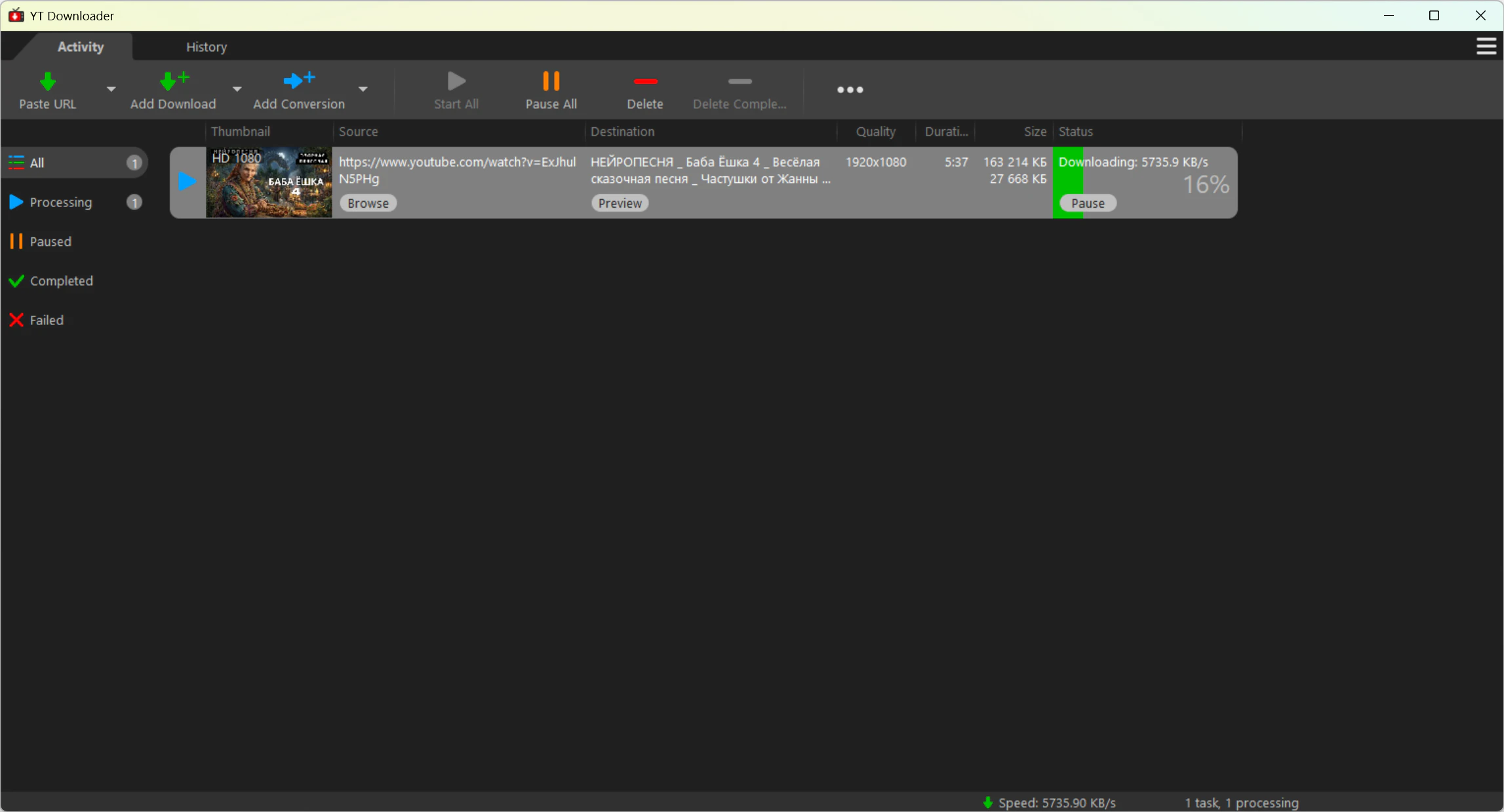 Ускорьте загрузку файлов YT Downloader имеет продвинутый механизм ускорения загрузки, который позволяет загружать видео на 500% быстрее, чем обычная скорость.