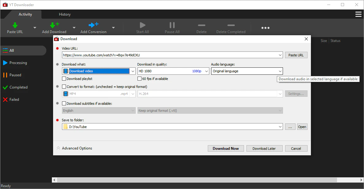 Видео и аудио конвертер YT Downloader также является мощным видео / аудио конвертером. Он может конвертировать локальные видео / аудио файлы в любой формат, который вы хотите, чтобы они воспроизводились везде.