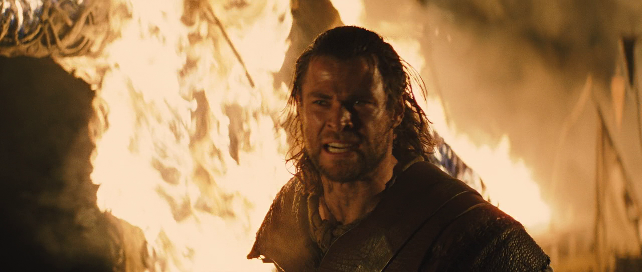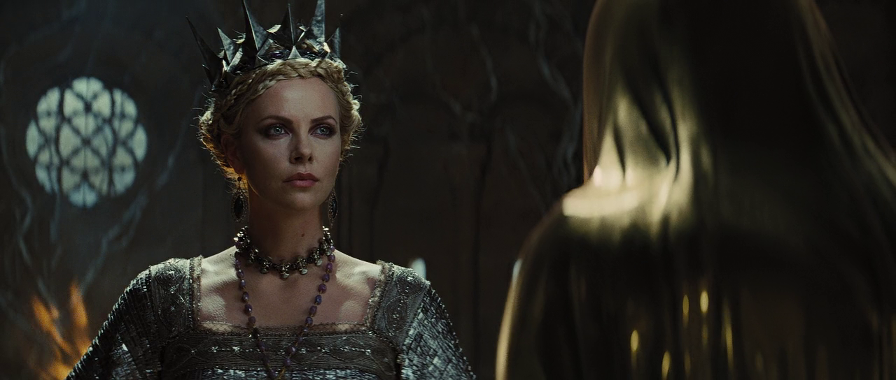 Утолив жажду мести мужчинам (возможно, и заслужившим кару в ее случае, раз уж она, по ее словам, пострадала от своего рода харассмента), Равенна перекинулась на вероятных соперниц и жесткой рукой с железными ногтями умерщвляет юных дев, питаясь их молодой энергией и красотой. Ее безобразный брат Финн (Сэм Спруэлл) — лишь покорная тень Равенны, исполнитель ее приказов и пожеланий, лишенный своей воли. Альтернатива ей — Белоснежка (Кристен Стюарт), которую условный народ считает доброй и справедливой, настоящей наследницей любимого им короля Магнуса. То есть, век женщин на троне так или иначе продлится, а что касается участи народа, тут уж как повезет. Во всяком случае конкурента у будущей королевы нет, потому что принц из сказки братьев Гримм превратился в сценарии Ивэна Догерти, Джона Ли Хэнкока и Хуссейна Амини всего лишь в аристократа без королевских кровей Уильяма (Сэм Клафлин), друга ее детства и паладина-спасителя. Охотник же сильно помолодел в силу того, что продюсерам душевно полюбился актер Крис Хемсворт в качестве бога грома Тора, которому и довелось сыграть заглавную роль. Но он на руку принцессы, а равно и на трон не претендует.